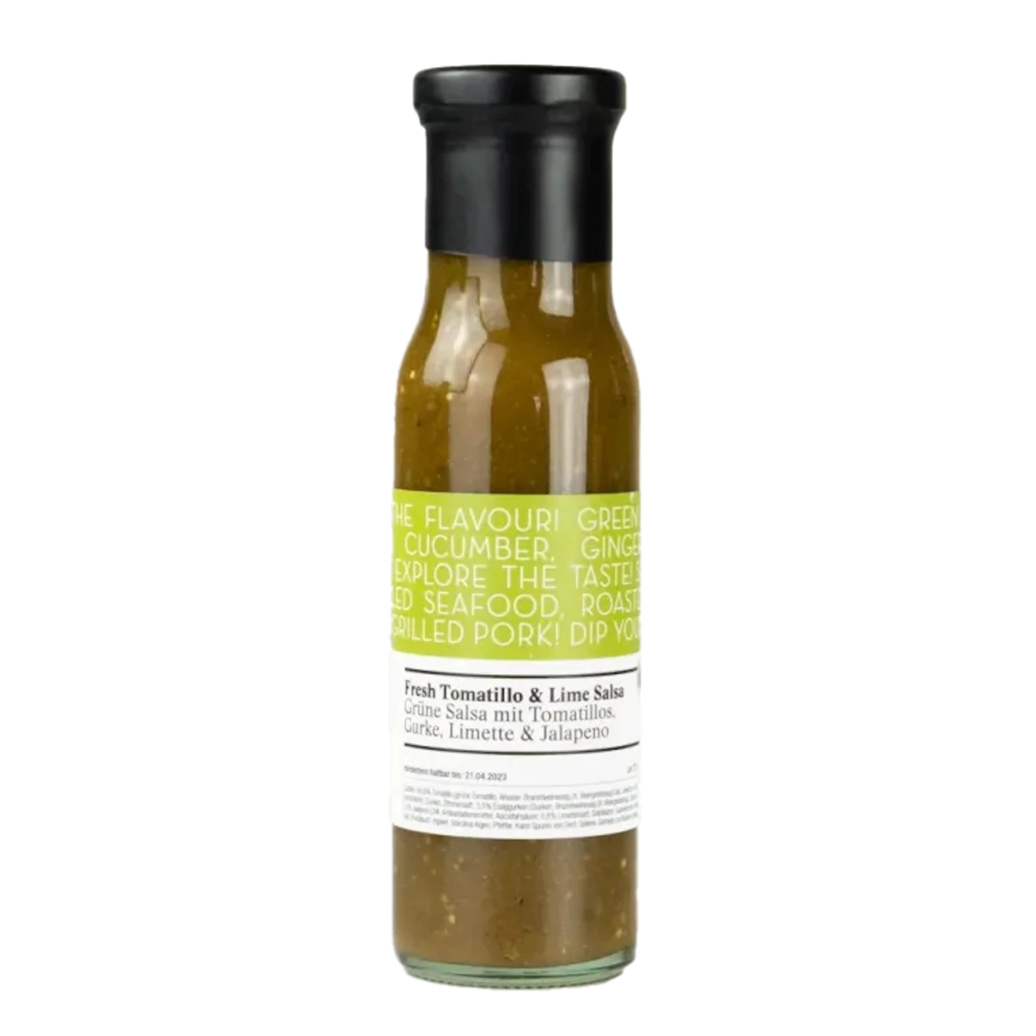 Viva la Salsa! Das säuerlich-würzige Aroma der Tomatillos, die typisch fruchtige Schärfe von grünen Jalapenos, die frische der Limette, sowie die Noten von Ingwer, Senf und Gurke verschmelzen in dieser Sauce zu einer sommerlich-mexikanischen Geschmacksexplosion.