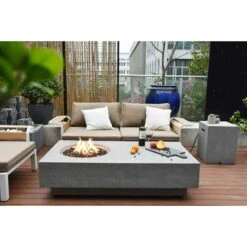 Mit der viereckigen modernen Gas Feuerstelle Manhattan Beton-Optik dunkelgrau verwandeln Sie Ihre Terrasse oder Ihren Garten in Ihre persönliche Wohlfühloase unter freiem Himmel. Der Feuertisch ist in der Mitte mit einem großflächigen Gasbrenner ausgestattet. Das Feuer ersetzt wunderbar das Kerzenlicht und das Flackern der Flammen lässt sich vom Wind praktisch nicht löschen wie es bei Kerzen der Fall ist. Maße: ca. L 91 x B 91 x H 42 cm