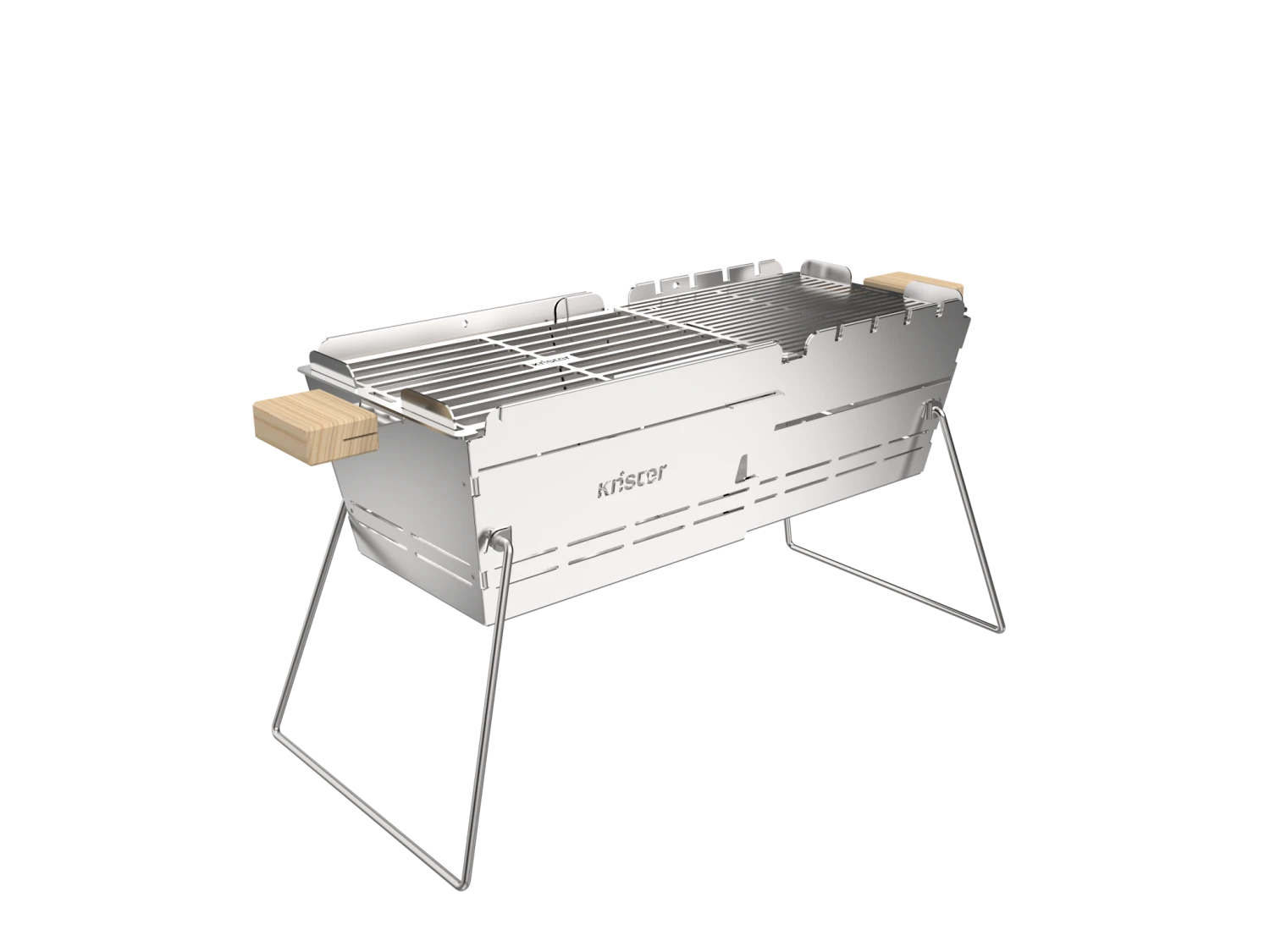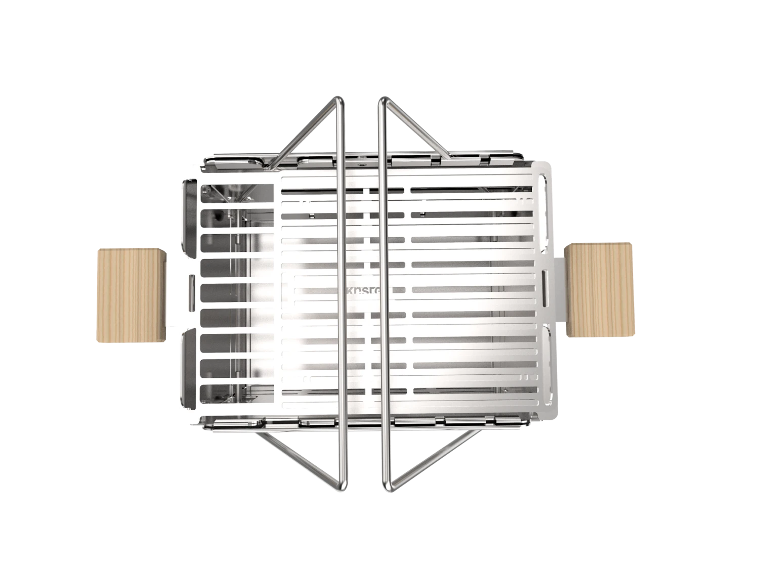 Der  Knister Grill Premium kann sowohl  im kleinen als auch im groĂen Zustand verwendet werden. Lasse ihn klein. wenn ihr nur zu zweit seid, vergröĂere ihn, wenn ihr mit vielen Freunden grillt.  Der Knister Grill Premium lĂ€sst sich auf die  doppelte GröĂe auseinanderziehen . Dazu einfach den Grill auf den Boden stellen, Henkel nach oben klappen, leicht auseinanderziehen und die Roste wieder hineinlegen.  2x höhenverstellbare Roste. GrillflĂ€che: 20 x 28 cm bis 50 cmÂ