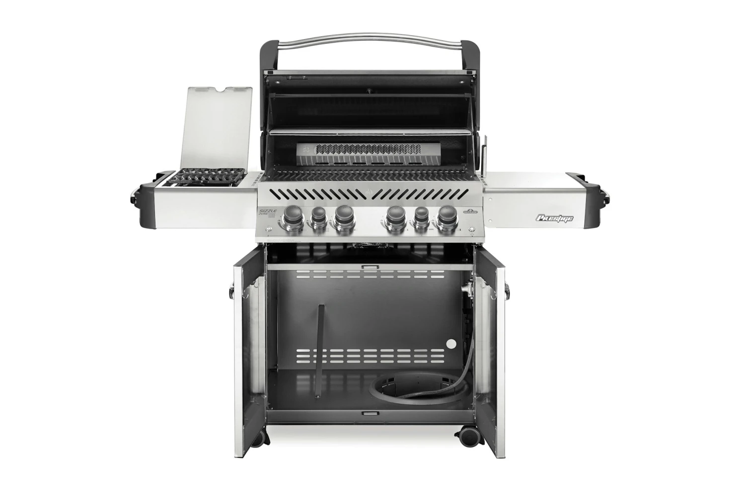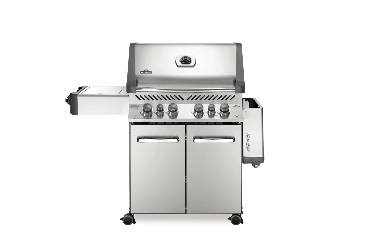Der Napoleon Prestige 500 vereint unter seiner schicken und platzsparenden LIFT EASE Rollhaube alles, was sich ein Grillmeister vorstellen kann. Mit 4 Hauptbrennern, einem Infrarot-Heckbrenner fĂŒr Gerichte vom DrehspieĂ und dem Infrarot SIZZLE ZONE Seitenbrenner fĂŒr perfekte Steaks ermöglicht er vielfĂ€ltigste Formen der Zubereitung. Auf der groĂzĂŒgigen HauptgrillflĂ€che plus Warmhalterost lassen sich Familie, Freunde, Nachbarn und der FuĂballclub verköstigen. GrillflĂ€che: 71 x 46 cm