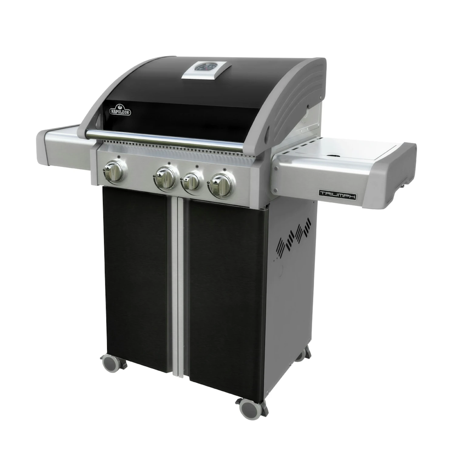 Der NAPOLEON Triumph 410 Gasgrill – Limited Edition steht für hochwertige Qualität und viele Extras wie zum Beispiel einem Seitenbrenner mit Kochfeld, einem „WAVE“ Stabgrillrost aus porzellanbeschichtetem Gusseisen, einem integrierten Flaschenöffner, klappbare Seitenablagen, 3 Edelstahl Hauptbrenner und schwarze Türen. Grillfläche: 59 x 43 cm